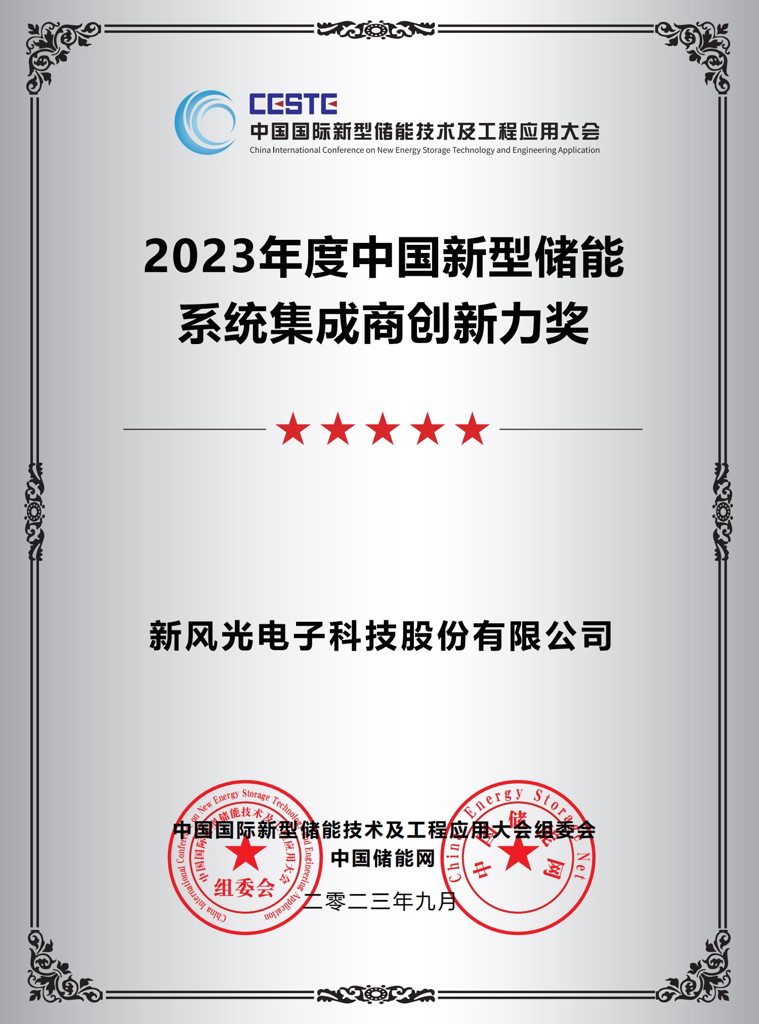 2023年度中國(guó)新型儲(chǔ)能系統(tǒng)集成商創(chuàng)新力獎(jiǎng)