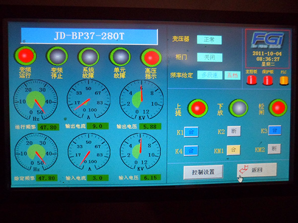 針對以上這些問題,煤礦決定對原系統(tǒng)進行改造。根據(jù)當今科技的發(fā)展,采用技術含量較高的變頻調(diào)速,替代原來的繞線電機串電阻調(diào)速,是較理想的方案。經(jīng)礦方多方面考察多個用戶現(xiàn)場,選用山東新風光電子科技發(fā)展有限公司生產(chǎn)的風光牌JD-BP37-280T型高壓變頻器提升系統(tǒng)。