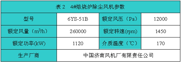 現(xiàn)場2#、4#焙燒爐除塵ID風(fēng)機型號相同,以4#焙燒爐除塵ID風(fēng)機為例介紹其參數(shù)。