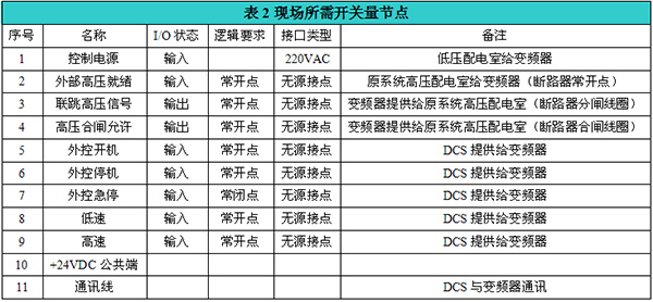 2.5現(xiàn)場所需開關(guān)量節(jié)點(diǎn)