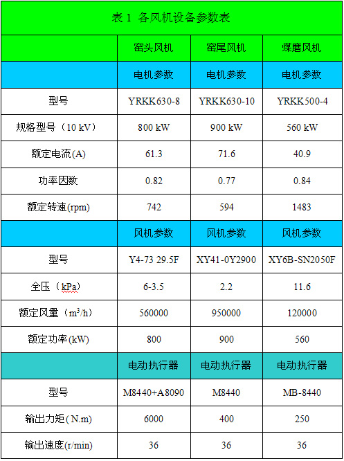 莒縣中聯(lián)水泥有限公司是中國建材集團水泥業(yè)務(wù)平臺--中國聯(lián)合水泥集團有限公司旗下的核心企業(yè)。公司位于新亞歐大陸橋頭堡、“日出初光先照”的日照市,南靠兗石鐵路,北近膠濟鐵路,東臨日照港,交通十分便利。公司現(xiàn)有一條日產(chǎn)4000t熟料生產(chǎn)線,采用新型干法窯外預(yù)分解工藝,技術(shù)裝備達到國內(nèi)先進水平,具有科技含量高、資源消耗低、經(jīng)濟效益好、環(huán)境污染少、管理模式新等特點。水泥生產(chǎn)線上的風(fēng)機,設(shè)計裕量比較大,存在“大馬拉小車”的現(xiàn)象。由于工況、產(chǎn)量的變化,所需的風(fēng)量也需隨之變化,調(diào)整風(fēng)量通過電動執(zhí)行器調(diào)節(jié)進、出口風(fēng)門的開度來完成,該方法雖然可以調(diào)節(jié)風(fēng)量,但電能浪費嚴重,風(fēng)機運行效率低。