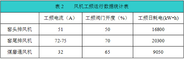 7.2水泥生產(chǎn)風(fēng)機變頻運行數(shù)據(jù)統(tǒng)計表