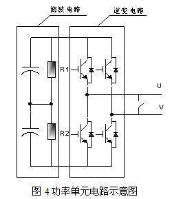 功率單元電路如圖4所示。為保證功率單元的可靠性,設(shè)計(jì)時(shí)選用同一批次的元器件,保證各元器件性能的一致性。每個(gè)功率單元均具有完善的保護(hù)措施,并且各工作狀態(tài)均送回主控單元,主控與各單元信號(hào)連接均采用光纖。