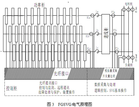 FGSVG產(chǎn)品的構(gòu)成主要有三個(gè)部分組成:進(jìn)線柜、功率柜、控制柜。圖3為電氣原理示意圖。